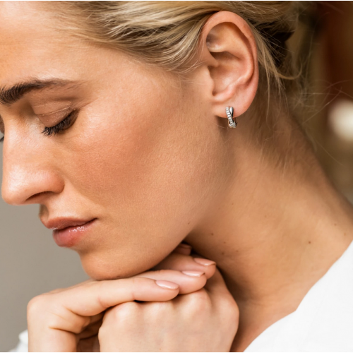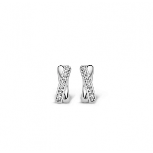 Estes lindos brincos TI SENTO - Milano são feitos em prata esterlina banhada a ródio para um brilho verdadeiramente grande, e definidos com uma fileira de cristais de zircónias brancas que foram delicadamente colocados.