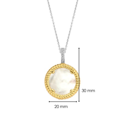 Este pendente de Prata TI SENTO - Milano 6784MW possui uma concha de madrepérola de dupla face, delicadamente abraçada por um contorno banhado a ouro de 18k. Destaque para o fecho (cravejado com zircónias brancas de corte brilhante) e que fará desta uma das suas joias favoritas. Um design de luxo inspirado na mãe natureza!