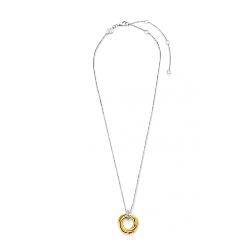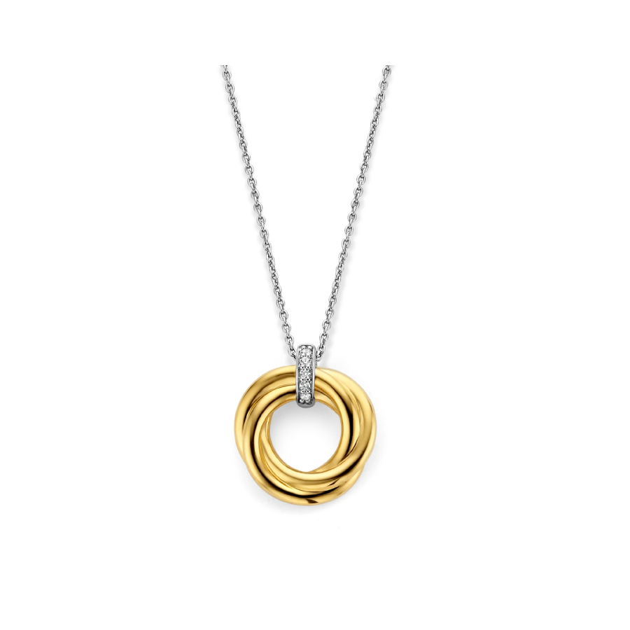 Este TI SENTO - Colar de prata banhado a ouro milano 3972ZY/42 ostenta um pingente de círculo com linhas torcidas elegantes e um pavé de zircônia cúbica branca em seu centro. Este colar banhado a ouro, feito de 925 libras esterlinas de prata, é uma peça de declaração luxuosa. Uma camada de ródio protege a joia e a mantém luminosa. Coloque-o com outros colares para iluminar seu decote. O comprimento deste colar é ajustável, seu alcance é de 38-48cm.