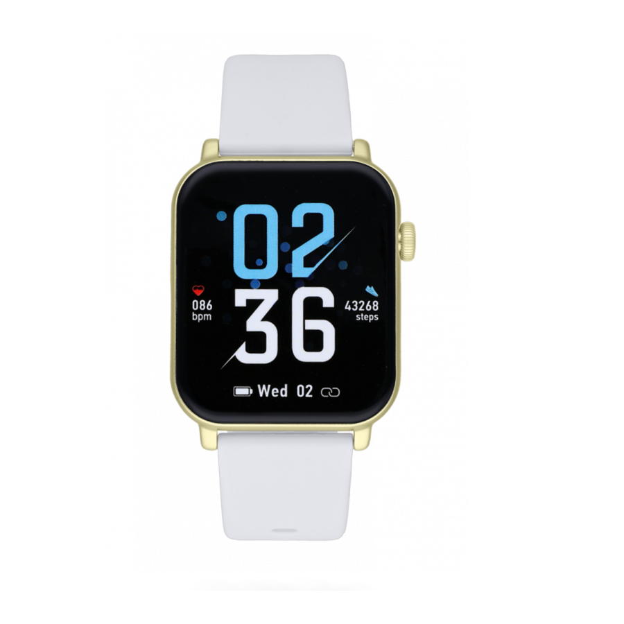 Relógio Smart da Watx. Coleção RIDER com caixa dourada e bracelete de silicone branca. A coleção Rider da Watx apresenta-nos um smartwatch perfeito para te acompanhar no teu dia-a-dia. Com funções de saúde e de desporto, o relógio permite realizar e receber chamadas. Com braceletes extra disponíveis para mudar a cor da bracelete em função das tuas necessidades.