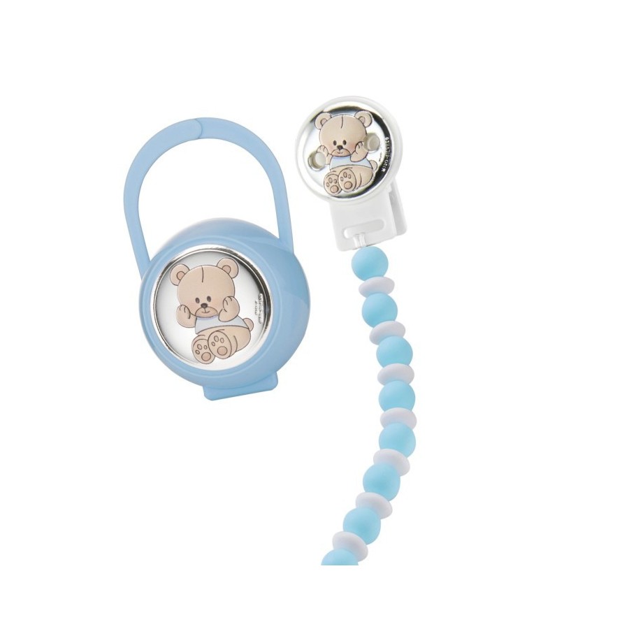 Set Porta + Corrente Chupeta Ursinho PVD/PRATEADO