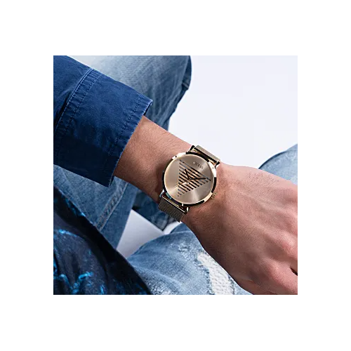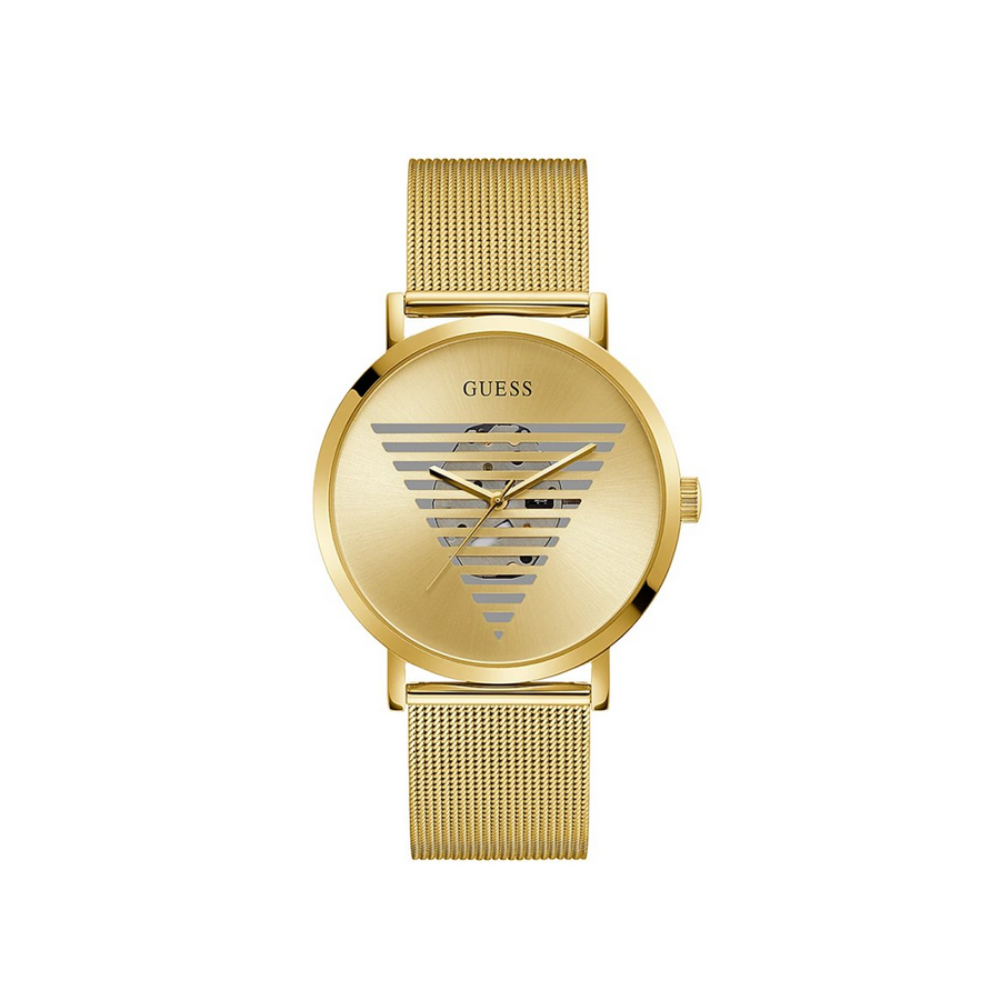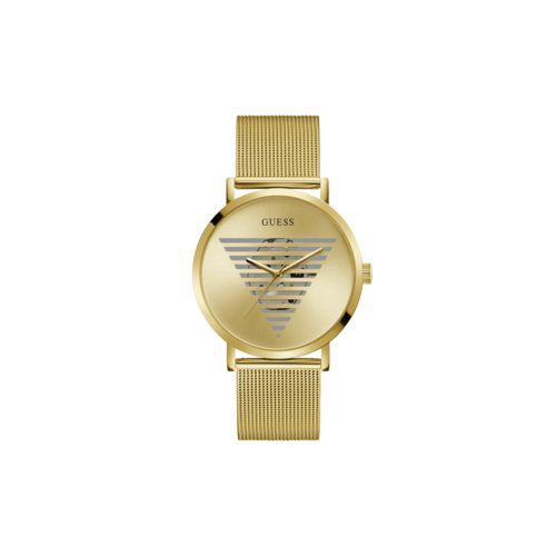Um verdadeiro ícone de estilo, com mostrador tonal e design de triângulo de corte que mostra seu movimento e pulseira de malha auto-ajustável elegante.