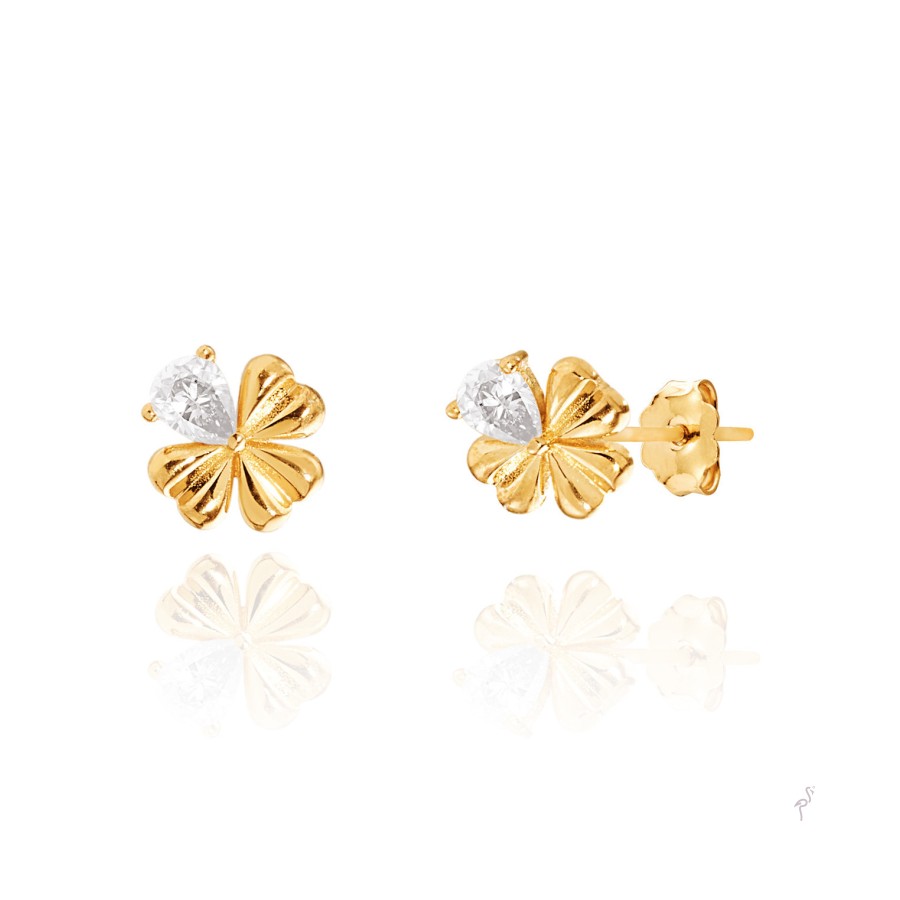 Brincos Link Trevo Prata Dourada