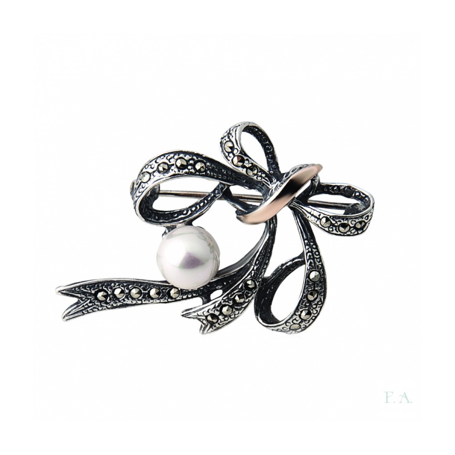 ALFINETE Laço PRATA E OURO 9K