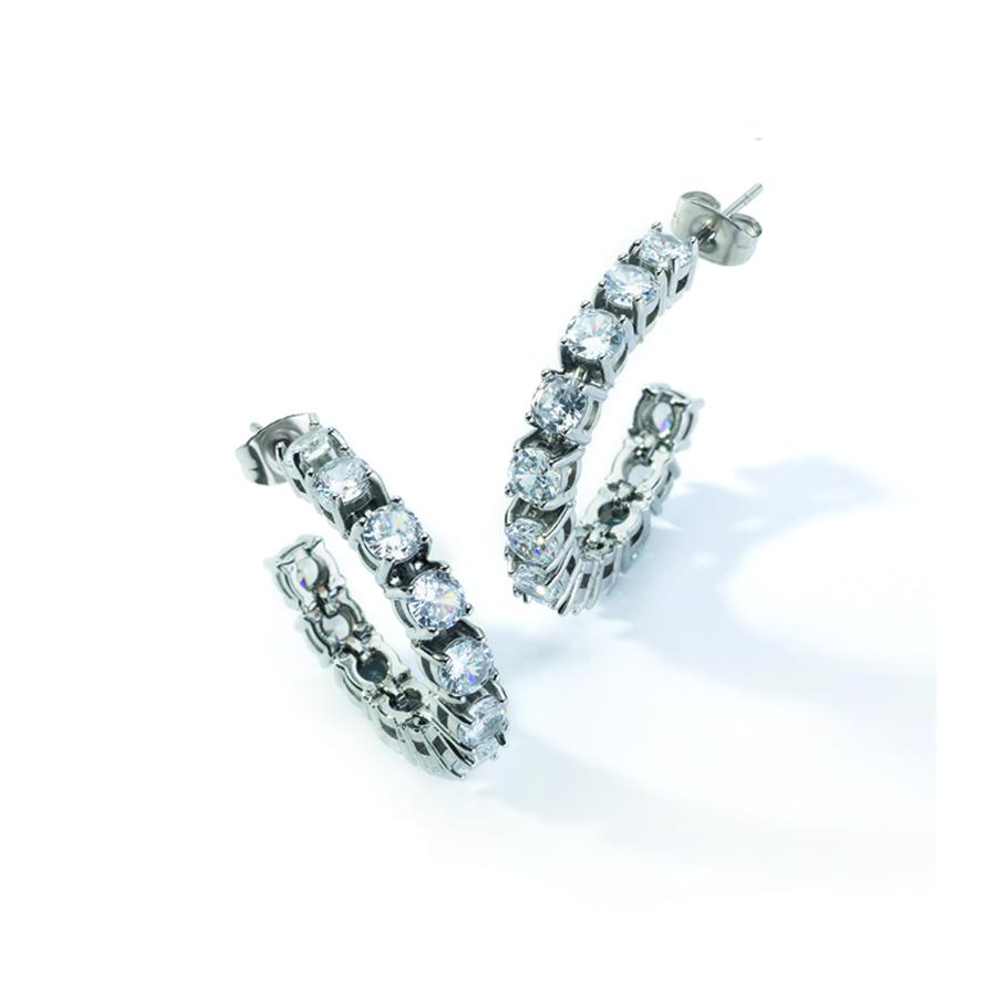 Brincos Lost In You de aço Hipoalergénicos, argolas de cristiais brancos. Uma peça única, diferente mas discreta, que arrasa em qualquer ocasião.Feita a pensar em mulheres irreverentes e donas de si mesmas.