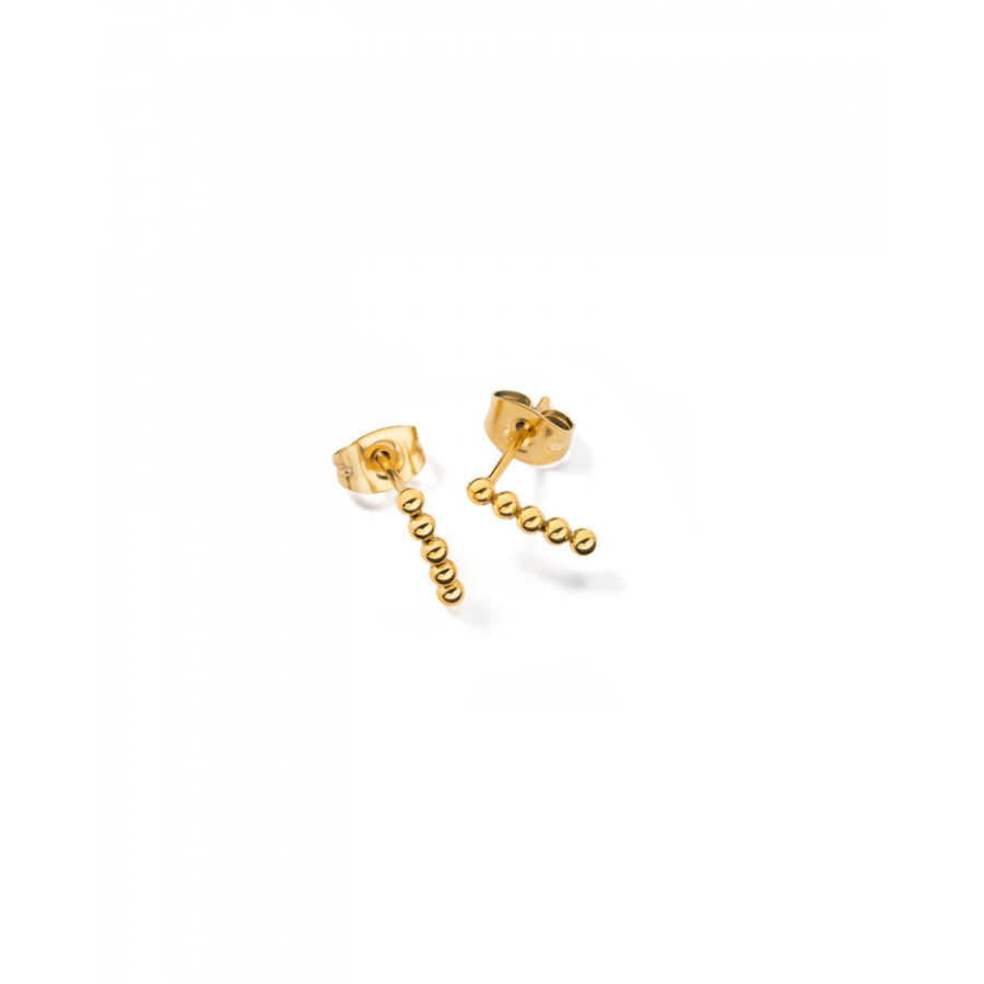 Brincos Somewhere inspirada em todos aqueles que tem um lugar onde se sentem em casa. Esta peça em aço hipoalergénico, dourados em que as bolinhas ao longo simbolizam os lugares que nos marcam no coração