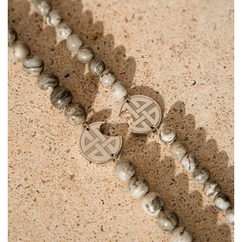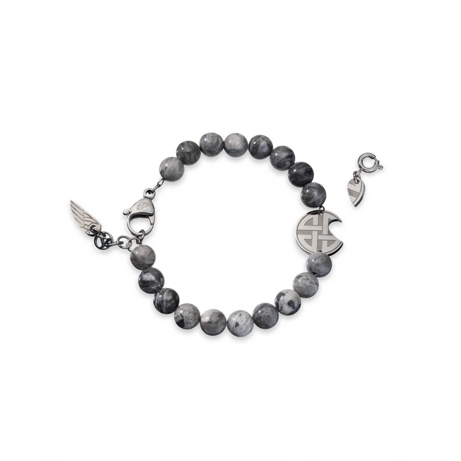 Pulseira Give a Little Bit para homem. Uma peça inspirada no amor livre com a certeza que o amor é maior que qualquer adversidade. Com bolas efeito bids e com o símbolo do amor eterno em latim. É uma peça que se completa com outras da mesma coleção, com o objetivo de ser o elo de ligação entre almas gémeas