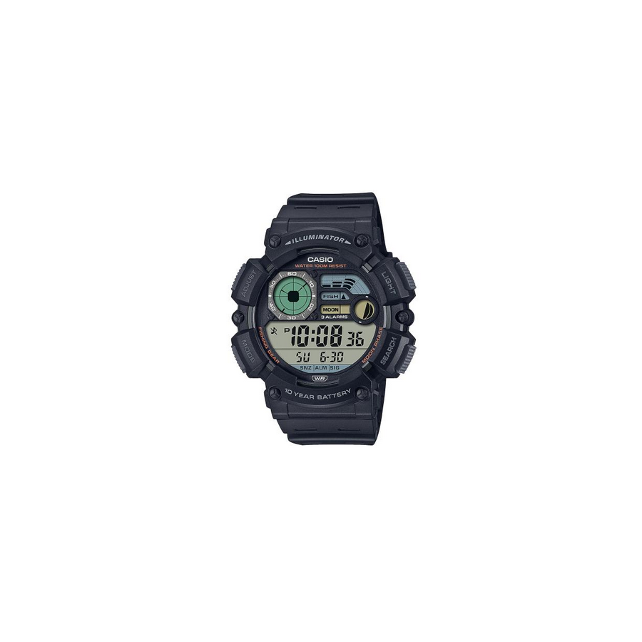 Saiba quando eles mordem. O relógio apresenta um símbolo de peixe quando chega a altura ideal para pescar.Segundo fuso horário