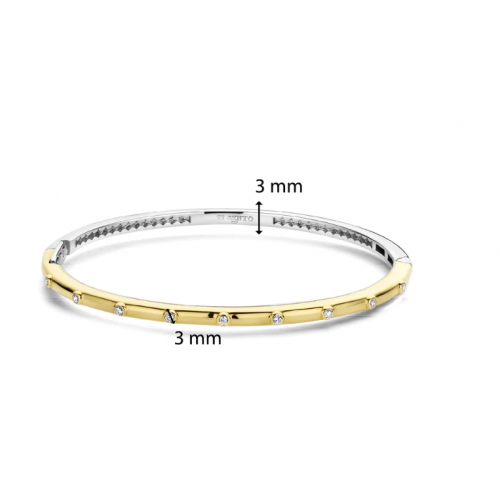 Esta pulseira banhada a ouro TI SENTO 23031ZY é uma joia radiante e glamourosa que combina sem esforço sofisticação com fascínio contemporâneo. A pulseira é trabalhada com prata de lei 925 da mais alta qualidade e, em seguida, banhada com ouro amarelo para um toque opulento e quente. Deslumbrantes pedras cúbicas de zircônia são meticulosamente colocadas à mão em sua faixa para um toque de glamour e brilho. Com o seu design elegante e esguio, esta pulseira oferece um ajuste confortável que desliza sem esforço para o seu pulso. Esta pulseira foi concebida para adornar o seu pulso com elegância, oferecendo um toque de luxo e requinte a qualquer conjunto. Use-o sozinho para um toque de elegância discreta ou emparelhe-o com outras pulseiras para criar uma declaração de moda única. Todas as nossas pulseiras são livres de níquel e hipoalergênicas.