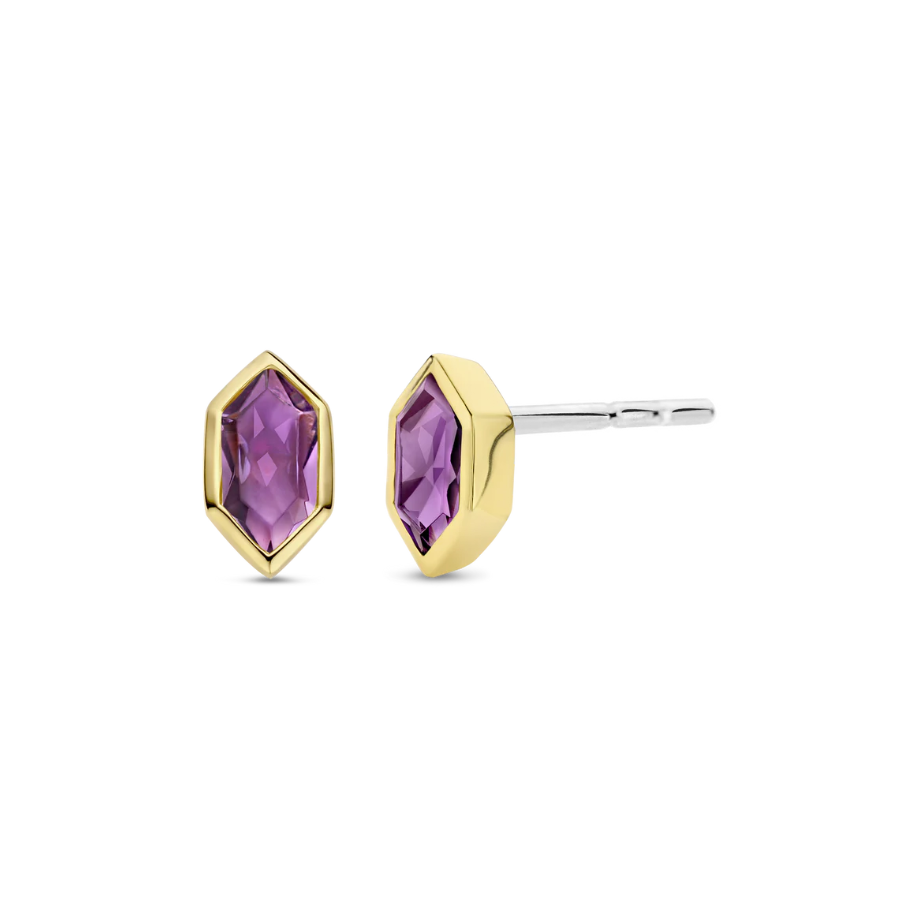 Estes brincos 7944PU banhados a ouro TI SENTO exibem pedras roxas de ametista radiantes complementadas pela opulência de configurações banhadas a ouro amarelo. A intensa tonalidade roxa exala uma sensação de elegância e mística. As pedras roxas são fixadas com segurança dentro de molduras geométricas banhadas a ouro, realçando seu fascínio e adicionando um toque de opulência. Os brincos de pino são inteiramente trabalhados em prata de lei premium 925 e banhados com ouro amarelo para um toque opulento e quente. Seu fechamento traseiro borboleta garante um ajuste confortável e seguro, proporcionando tranquilidade enquanto você usa esses pinos durante todo o dia e à noite. Todos os nossos brincos são nickel-free e hipoalergênicos.