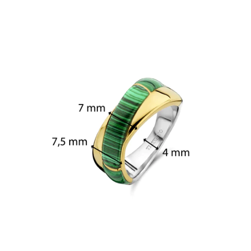 Este anel banhado a ouro TI SENTO 12299MA ostenta uma encantadora pedra verde malaquita. Fabricado com prata de lei 925 da mais alta qualidade, o anel é então banhado com ouro amarelo para um toque opulento e quente. Símbolo de transformação e cura, a malaquita carrega energia positiva e proteção. Seus tons verdes hipnotizantes exalam luxo e magia. Use-o como uma peça de declaração por conta própria ou empilhe-o com outros para criar o seu look personalizado em camadas. Todos os nossos anéis são livres de níquel e hipoalergênicos.
