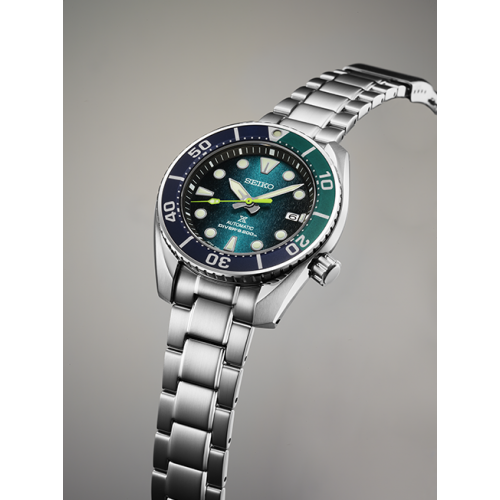 Este novo relógio Seiko Prospex de edição limitada é alimentado pelo Calibre 6R35, um movimento mecânico automático com uma reserva de marcha de 70 horas. O vidro é de safira com revestimento anti-reflexo na face interna, e lupa sobre a janela de data às 3 horas.